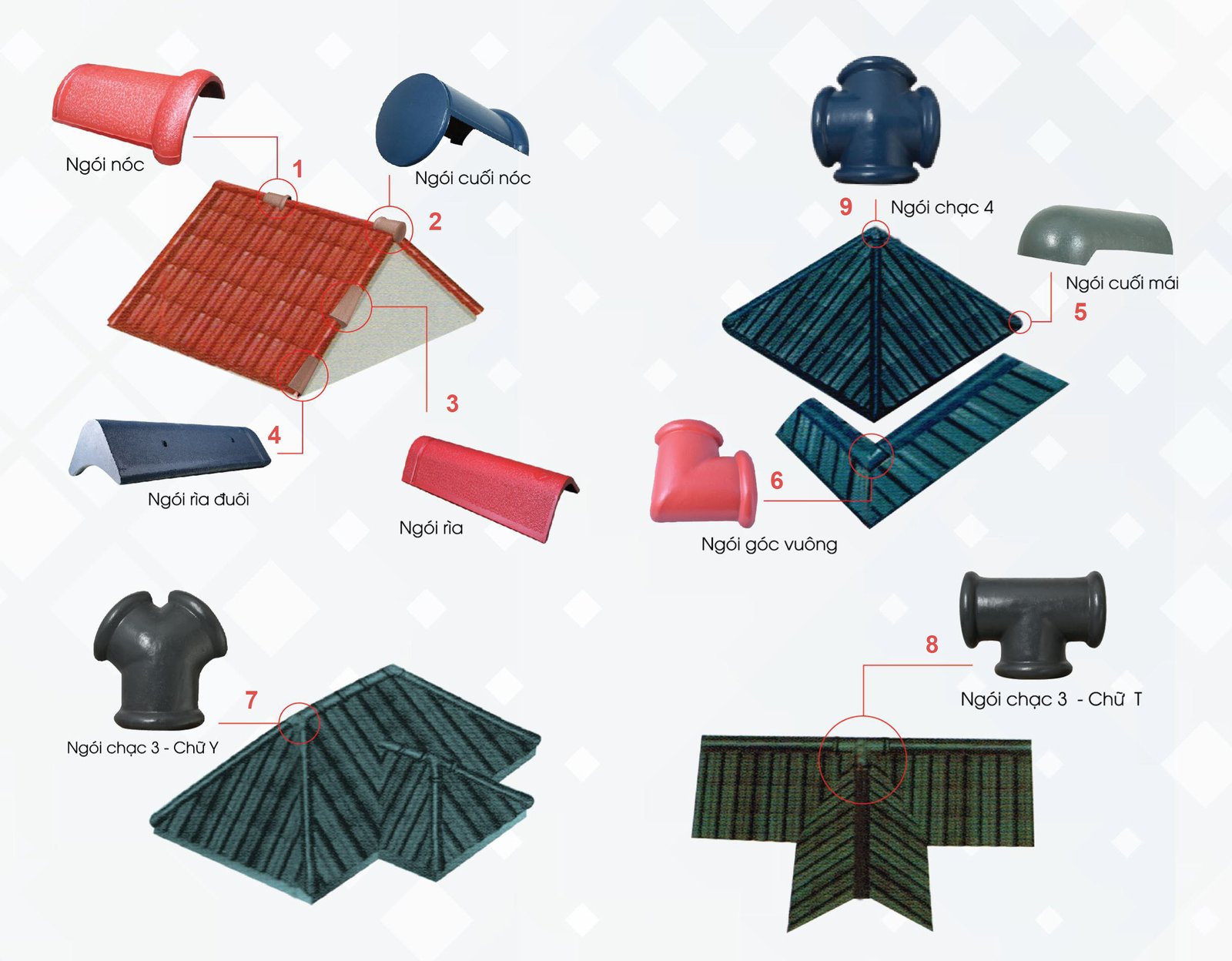 Lưu ý: Màu sắc của các viên ngói phụ kiện sẽ đi chung với màu sắc viên ngói chính