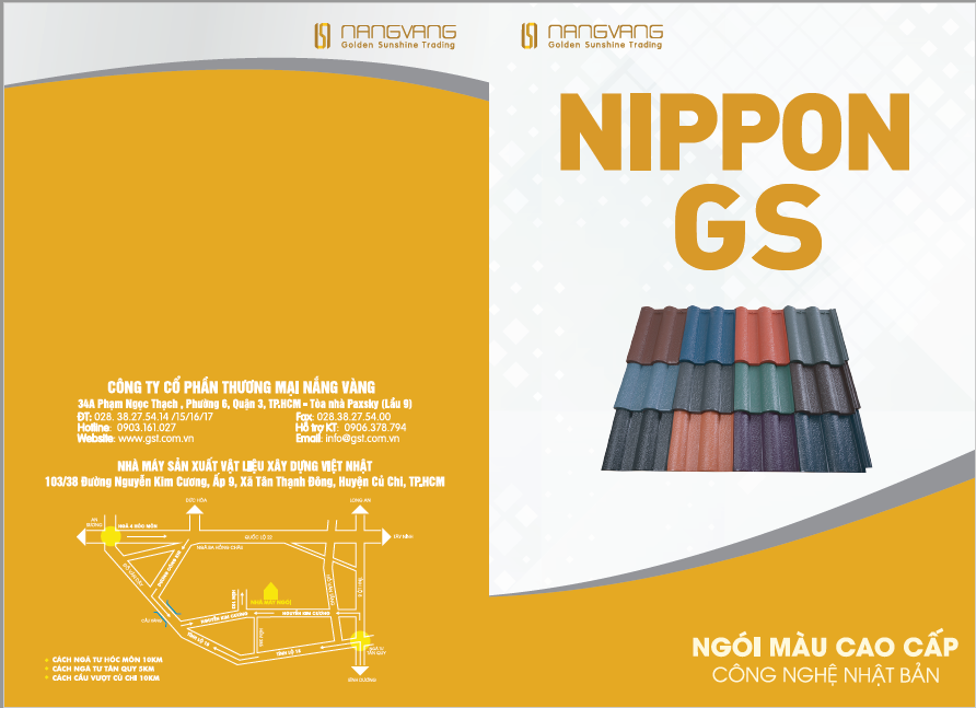 Trên 15 năm hoạt động sản xuất và thương mại xuất nhập khẩu, Thương hiệu ngói màu NIPPON-GS của Công Ty Cổ Phần Thương Mại Nắng Vàng đã khẳng định được vị thế của mình trong nghành vật liệu xây dựng. Vinh dự nằm trong Top dẫn đầu doanh nghiệp về Chất lượng, Thương hiệu sản phẩm: